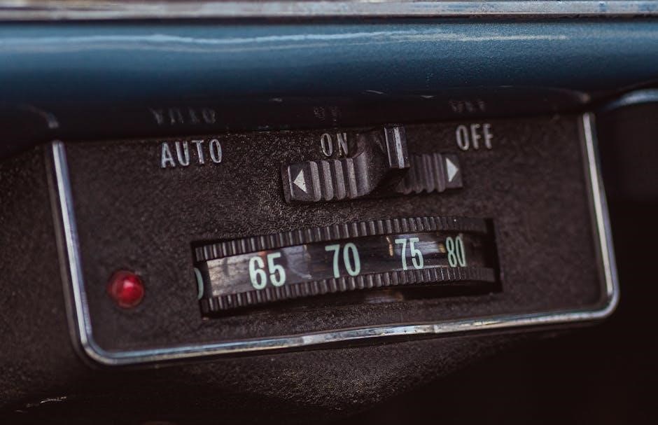 Proper tire maintenance is essential for safety and efficiency. The 2017 Chevy Cruze recommends tire pressure of 35-40 PSI for most trim levels, depending on load and driving conditions. Always check pressure when tires are cold for accuracy. Rotate tires every 7,500 to 10,000 miles to ensure even tread wear. Use the “rearward cross” rotation pattern for optimal results. Inspect tires monthly for wear, damage, or uneven tread. If uneven wear occurs, have your alignment checked. Refer to the manual for specific recommendations tailored to your Cruze’s trim level and driving habits. Proper tire care enhances safety, fuel efficiency, and overall performance.
